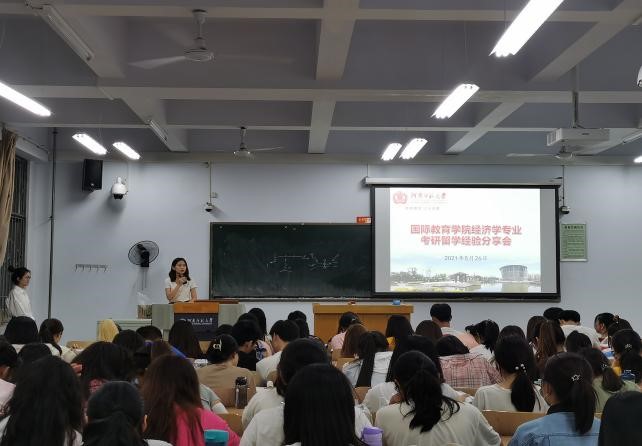 为激发学生学习热情,明确学习目标,掌握学习方法,5月26日晚,国际教育学院于启智楼108教室召开考研留学经验分享会。2019级辅导员韩舒、兼职辅导员范琦琪、优秀学生代表及百余名学生参加会议。
