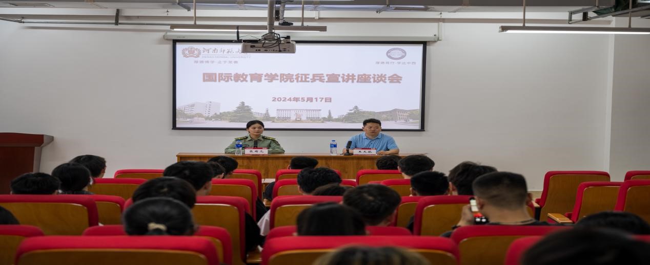 为进一步加强国防教育,鼓励青年学子勇担保家卫国神圣使命,扩大征兵政策宣传的影响力和辐射面, 5月17日下午,国际教育学院于实训楼701报告厅举办征兵宣讲会。新乡市牧野区人武部张绮元干事、各年级辅导员以及2020级毕业学生代表共120余人员参加会议。会议由征兵专员王天航主持。