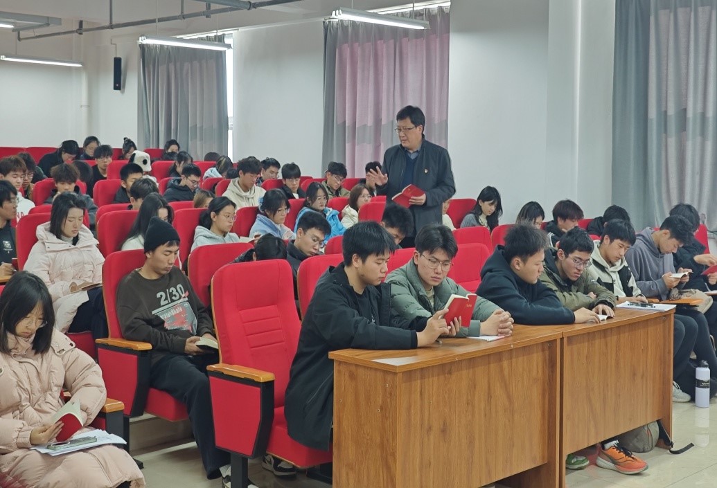 为坚持用党的最新创新理论武装青年大学生,提升学生干部的综合素质和工作能力,持续深化思想引领,充分发挥榜样力量,2024年11月29日中午,国际教育学院在求真楼701报告厅举行学生骨干专题培训。培训由院党委书记田小勇主持,2024级专兼职辅导员、班干部和宿舍长代表共一百余人参加。