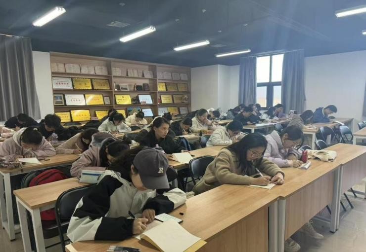 为提升学生的汉字书写能力,传承和弘扬中华优秀传统文化,在学校举办第三十二届大学生基本技能大赛之际,国际教育学院在实训楼 714 教室成功举行了“三笔字” 比赛院赛。
