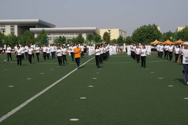 6月2日下午,学校塑胶操场人头攒动,锦旗飘扬,由校工会组织,全校23个单位参加的广播操比赛如期举行,我院全体教师精神抖擞,器宇轩昂的列队进入比赛场地,经过近一个月的集中训练,我们有充足的信心和饱满的热情来参加和赢得好的名次。继外国语学院之后我们学院第二个登场,在短短的六分钟里,我们全体老师认真流畅的做完全套动作并按秩序退场。整个过程一起哈成,给在场的观众留下了深刻的印象。本次活动展示了我院蓬勃向上的精神风貌,团结了队伍,为今后的工作奠定了良好的基础。