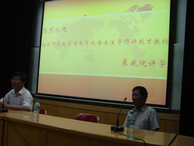 王院长主持本次讲学活动  徐殿才教授在做讲座  大家聚精会神的学习  学生积极提问 6月10日下午,我校党校教室座无虚席。北京师范大学历史学院许殿才教授应我学院邀请,为我院师生做了一场题为《古代史书中的历史智慧》的专题讲座。讲座由我院院长王记录主持,学院专业课教师代表和300余名学生共同聆听了讲座。 许殿才教授围绕如何认识历史教育这一问题,从古人如何认识历史、古人如何总结治国安邦经验以及历史对做人的影响等三个方面深入浅出地为大家阐述了古代史书中的历史智慧。许教授重点强调了历史中的“变”和“常”,指出历史是变化的,同时这种变化是具有规律的;古人通过研究历史变化中的规律不断总结治国安邦的经验。讲座中,许教授旁征博引,运用大量生动的史料、史实向同学们阐明了古人是如何为人处世的。讲座结束后,许教授还耐心回答了现场学生的提问,现场气氛十分活跃。 此次讲座把历史教育和为人处世联系起来,用历史中的智慧来引导同学们树立起马克思主义历史观,对我校历史教育的发展和学生唯物史观的确立起到了积极的推动作用。 (社会发展学院 蒋晋光 李晓宇) |
