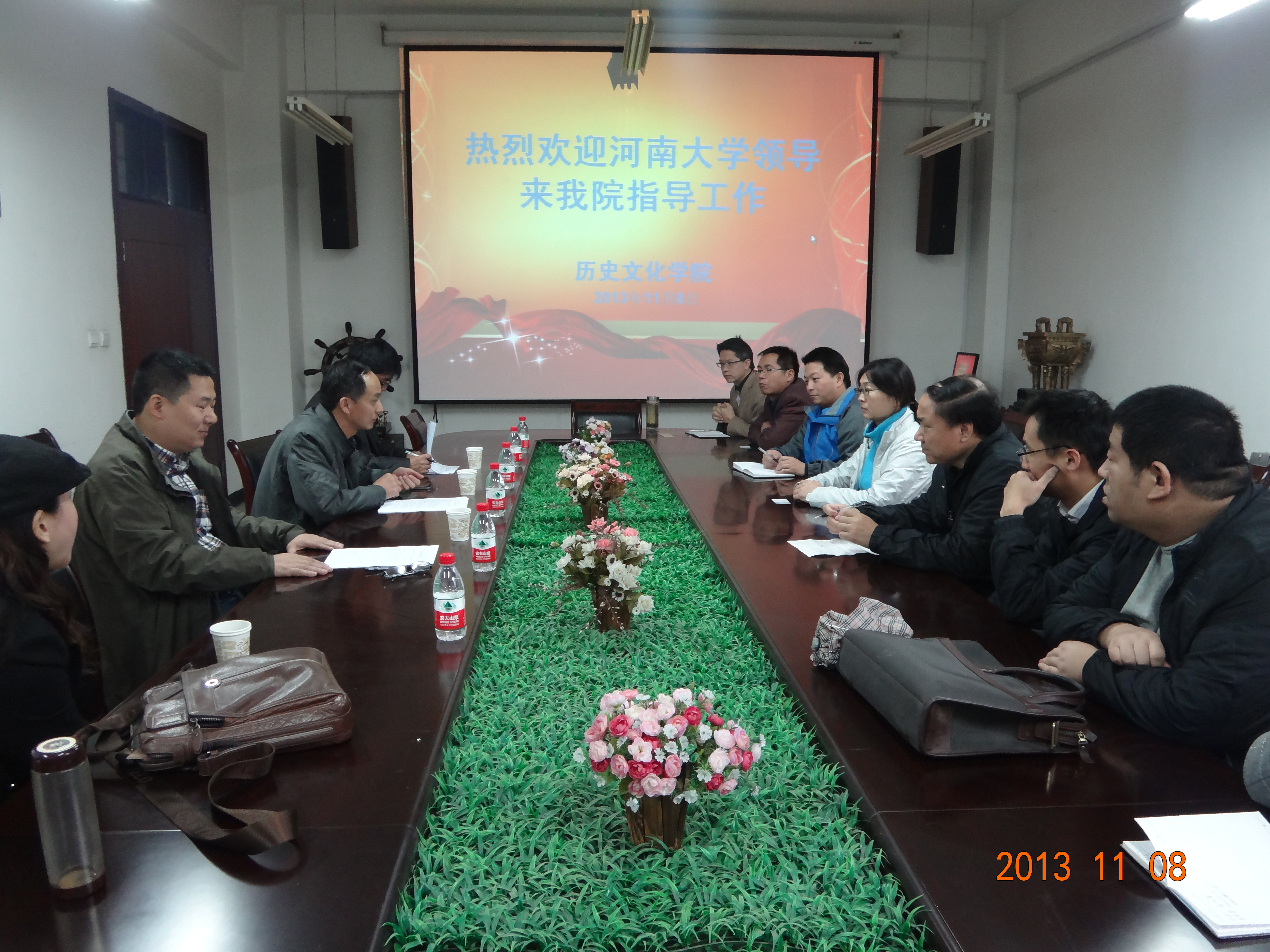 2013年11月8日上午,河南大学教务处副处长刘克辉教授、河南大学历史文化学院副院长张礼刚博士、世界史教研室主任史晓红博士及胡浩博士莅临河南师范大学历史文化学院,就世界史学科的教学与研究进行调研。