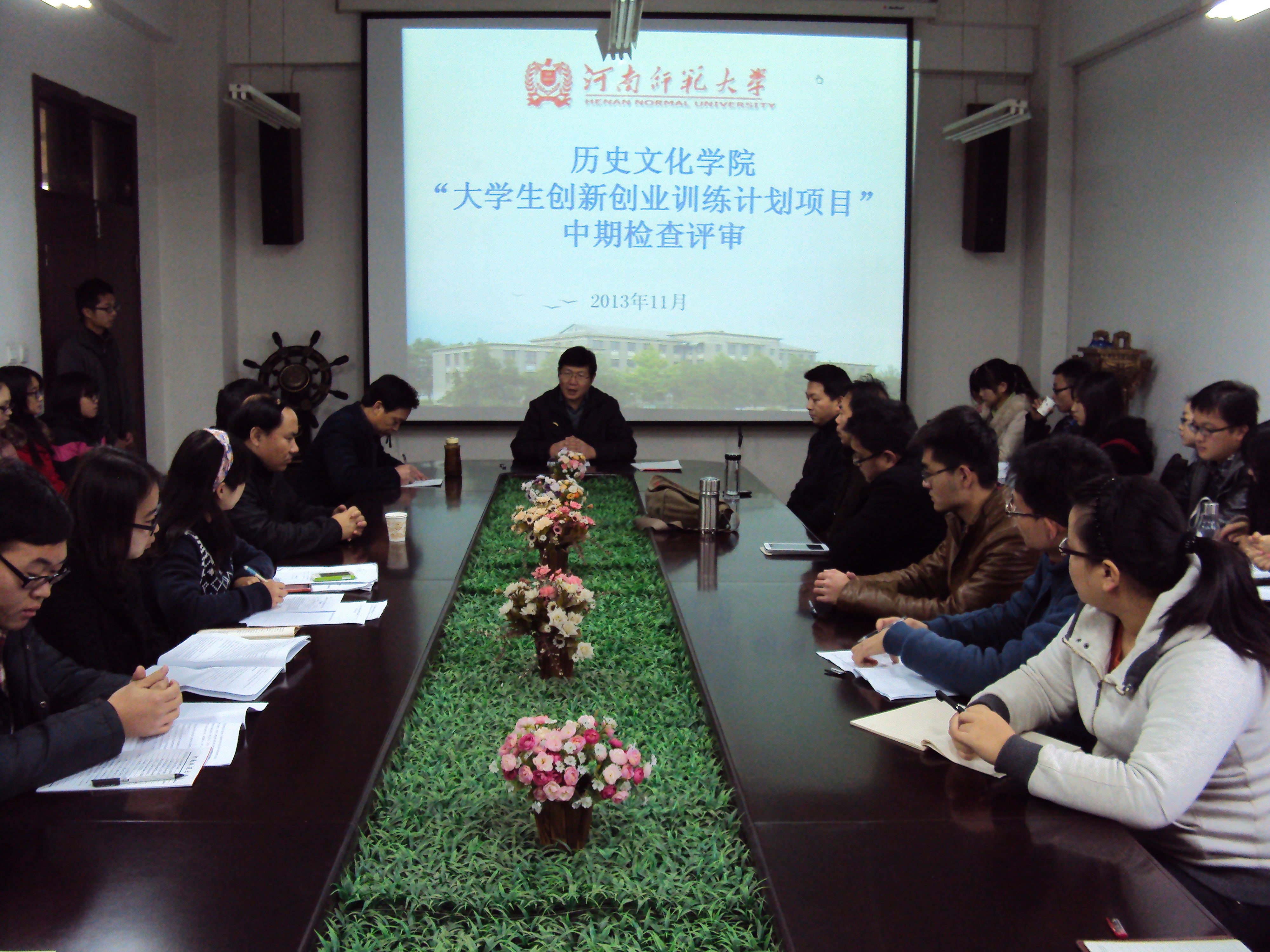 2013年11月16日上午,历史文化学院在学院办公楼对2012年立项的“大学生创新创业训练计划”项目进行中期检查。本院七名老师和百余名项目组成员参与本次中期检查。