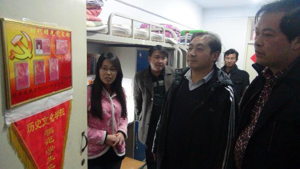 2月24日下午,洛阳师范学院团委书记郭天顺一行到我校参观考察公寓文化建设和公寓团建工作。校团委书记岳杰勇及历史文化学院学生工作负责人陪同考察。