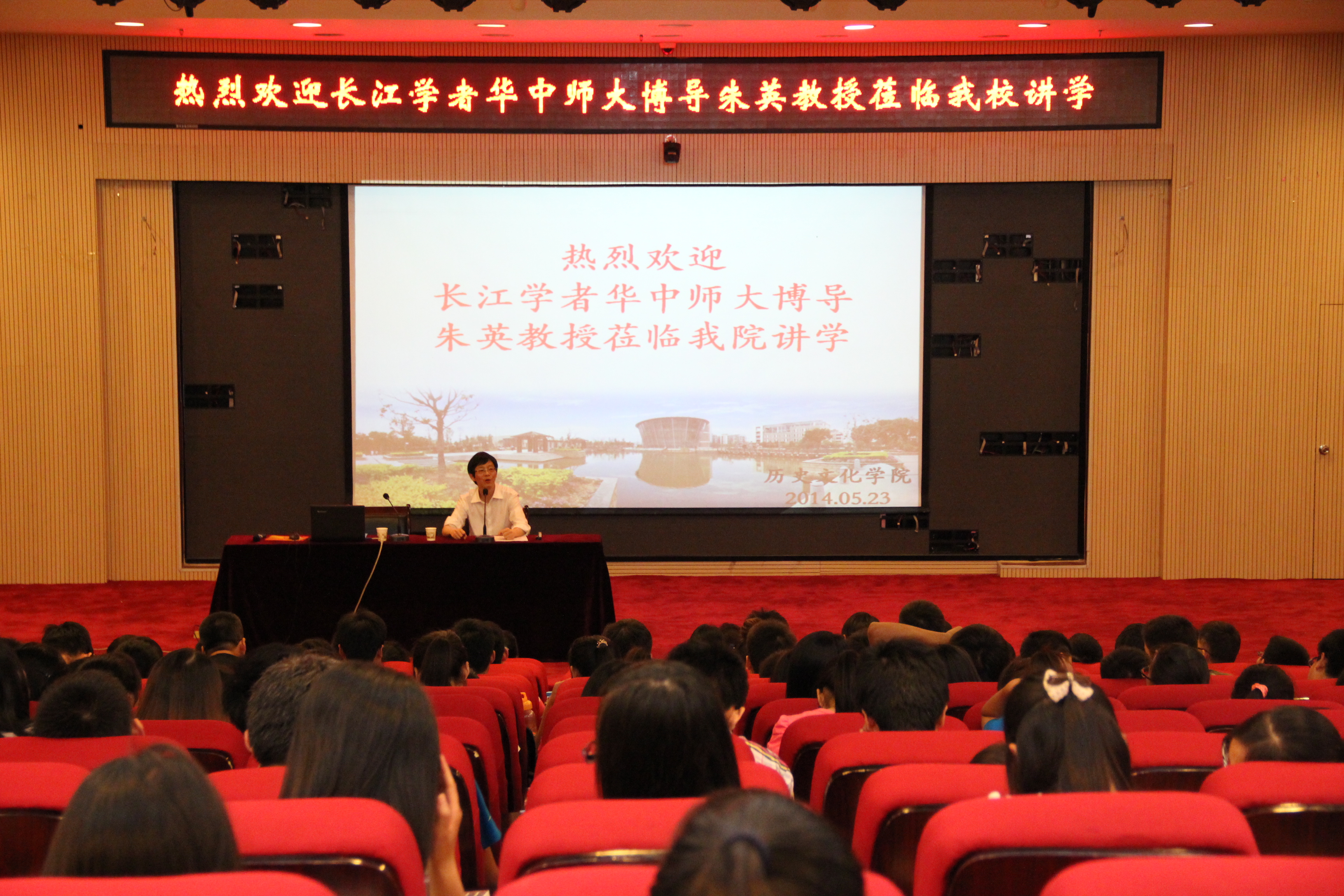 朱英教授持续两个小时的专题讲座视野广阔,显示了对学术研究深入的造诣。他深入浅出而又风趣幽默的论述赢得了全体师生热烈的掌声。