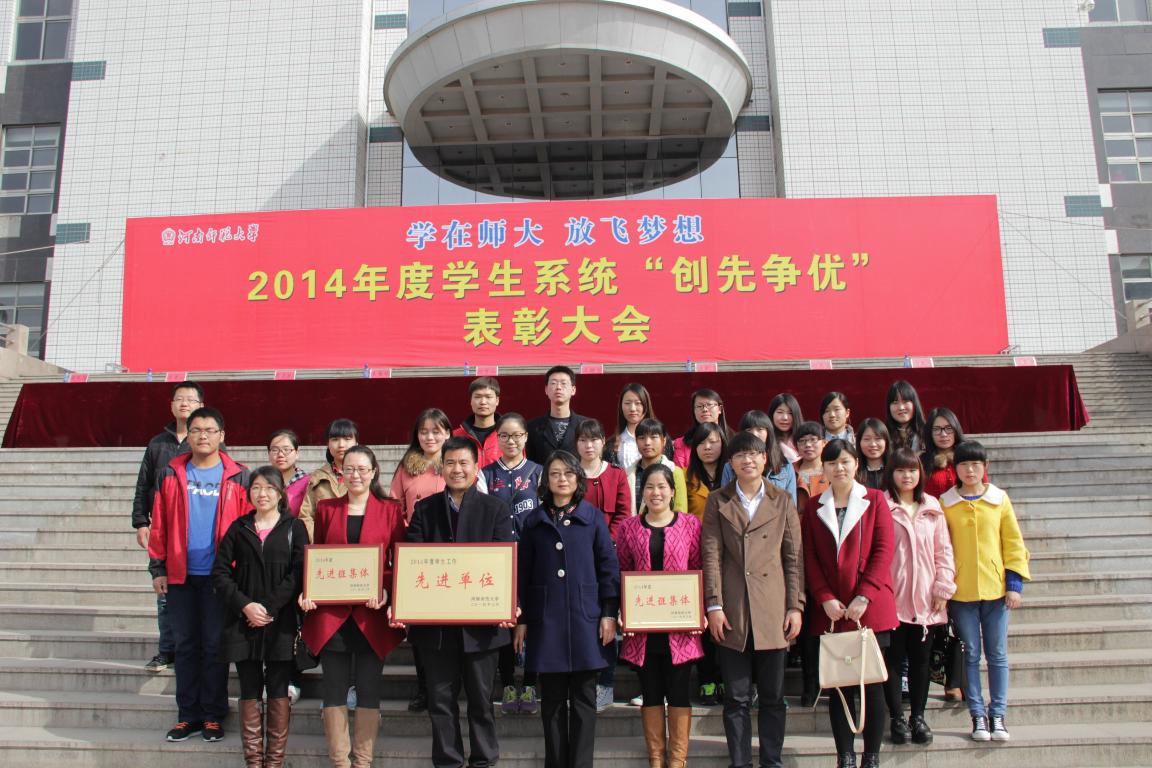 3月21日上午,我校“学在师大,放飞梦想”2014年度学生系统“创先争优”表彰大会在图书馆前广场举行。我院党委书记王霞、副书记康海军、团委书记张利兵、各级辅导员及全体2014级同学参加了此次大会。