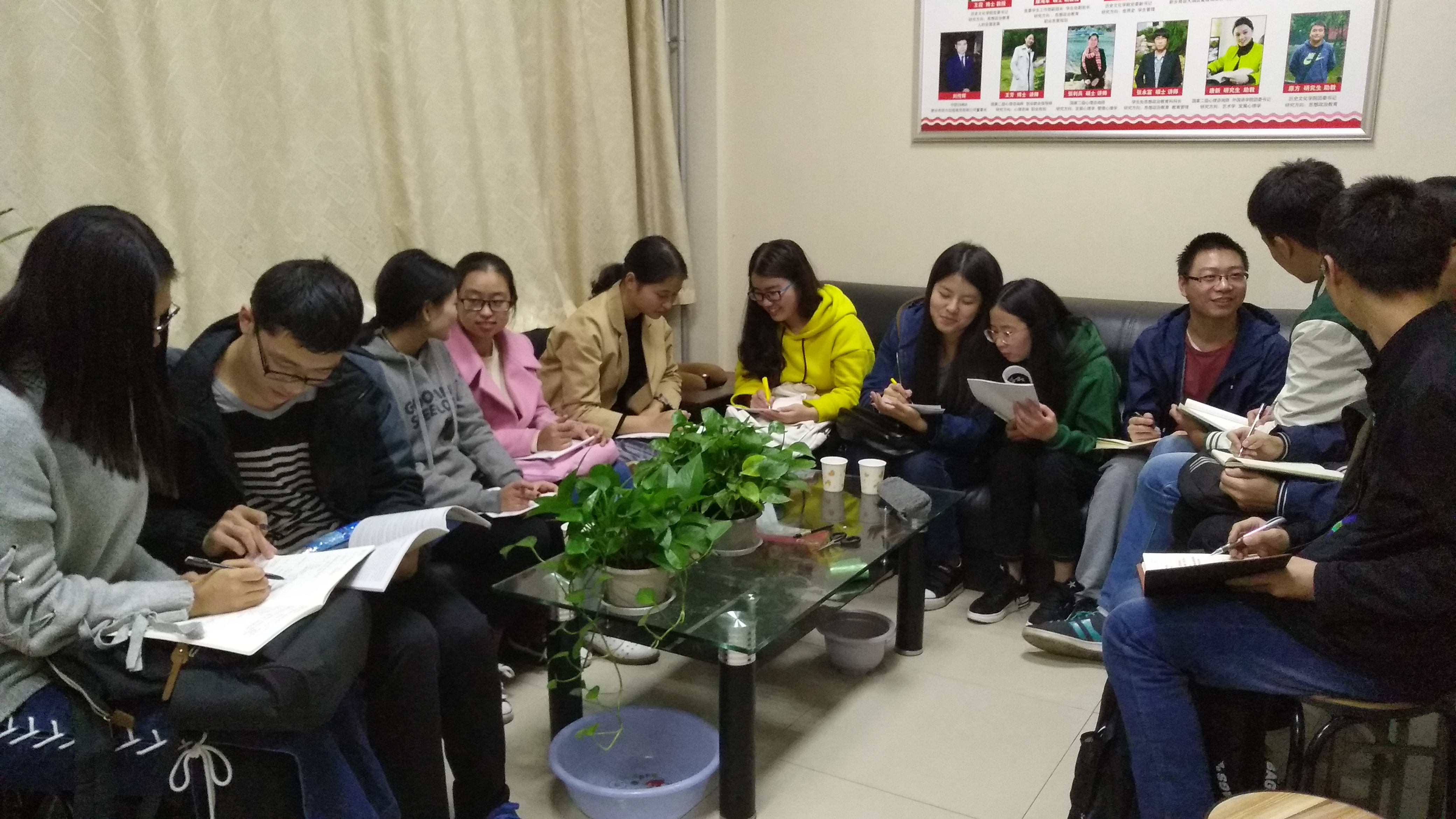 为响应学校、学院党委关于学习十九大精神的号召,11月9日晚,历史文化学院学习型青年社区“蹄疾步稳·青年引领”党的十九大精神学习活动组织座谈会于院办102办公室举行。学院2015级本科生党支部成员参加本次座谈。