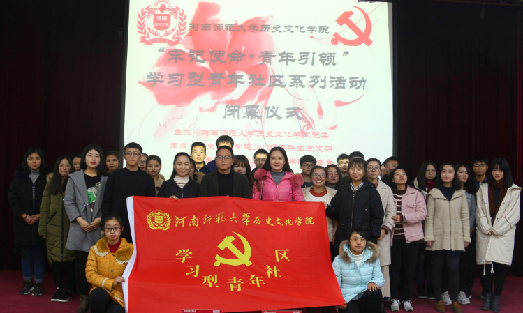 活动在一段引发同学们个人追问的《我是谁》视频中拉开帷幕。马田园老师首先发表致辞,代表学院表达了对学习型青年社区系列活动助力学院更好更快发展的高度赞扬以及对同学们成长成才的殷切希望。随后,2015级学生代表李岩重点分享了“感受农村新气象”——辉县裴寨行活动的成果。李岩同学结合自己在裴寨调研的所见所闻,为大家介绍了裴寨村的村史与村官裴春亮的先进事迹。对此,马田园老师号召同学们要学习裴春亮一心为民的精神,端正个人入党动机,用实际行动献礼十九大。2016级学生代表李思雨展示了“展望未来,寄语家乡”主题寄语活动的成果,并播放在校园里随机采访的视频,展现各学院不同年级不同专业学生对新时代的看法。2017级学生代表亢婷炜则通过十九大主题系列观影活动、“十九大精神入课堂和图片展览活动的成果展示,向我们诠释了十九大精神就在身边。仪式最后,老师和同学们一同观看了纪录片《我们的自信》,深化了大家对“四个自信”的认知。会后,与会老师和党员学生代表合影留念,本次闭幕仪式圆满结束。