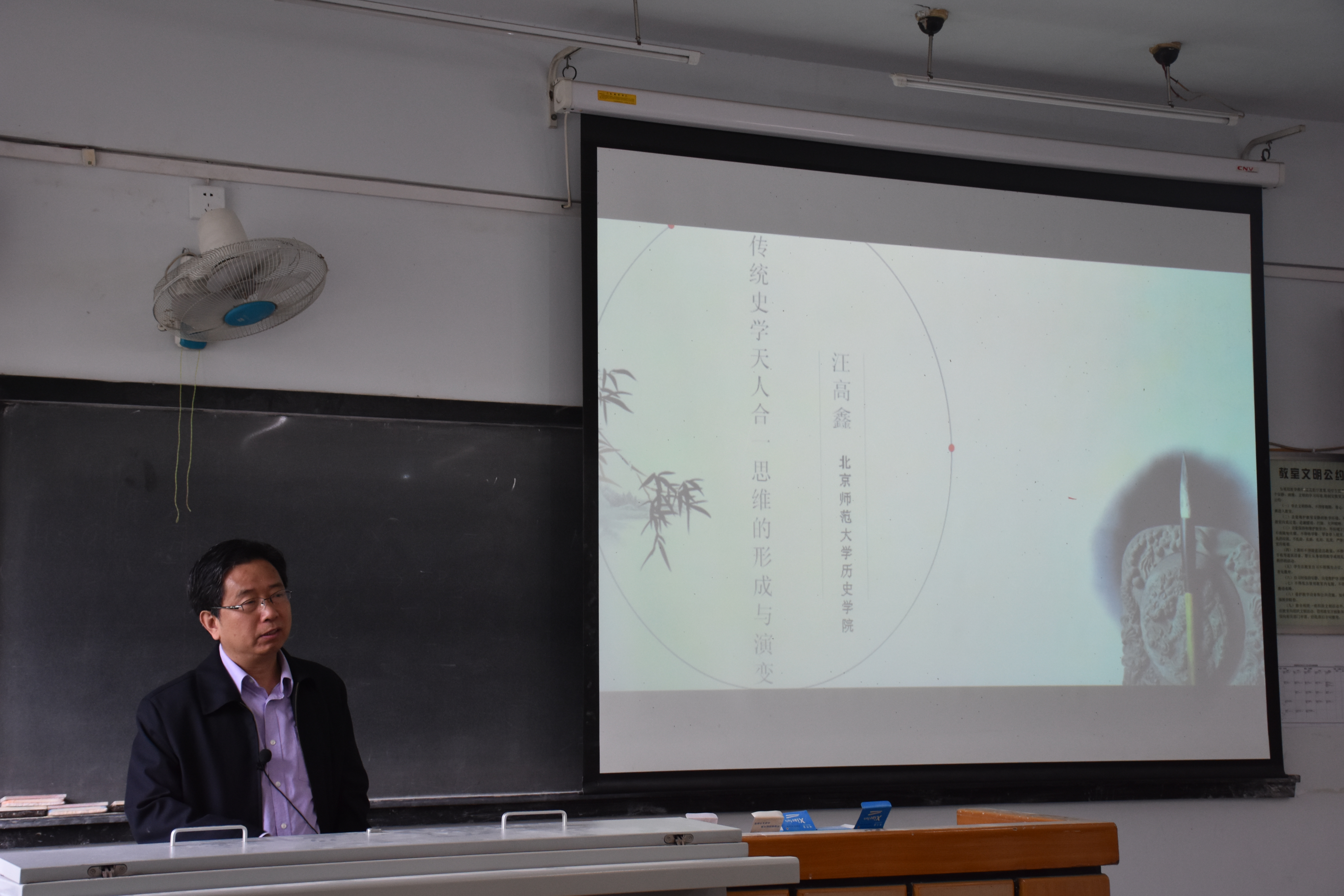 2018年4月28日上午8:00—10:00,北京师范大学博士生导师汪高鑫教授应我院邀请,在文渊楼425作题为“传统史学天人合一思维的形成与演变”的学术讲座。讲座由巨永明院长主持,学院相关专业教师及研究生、本科生共100余人聆听了讲座。