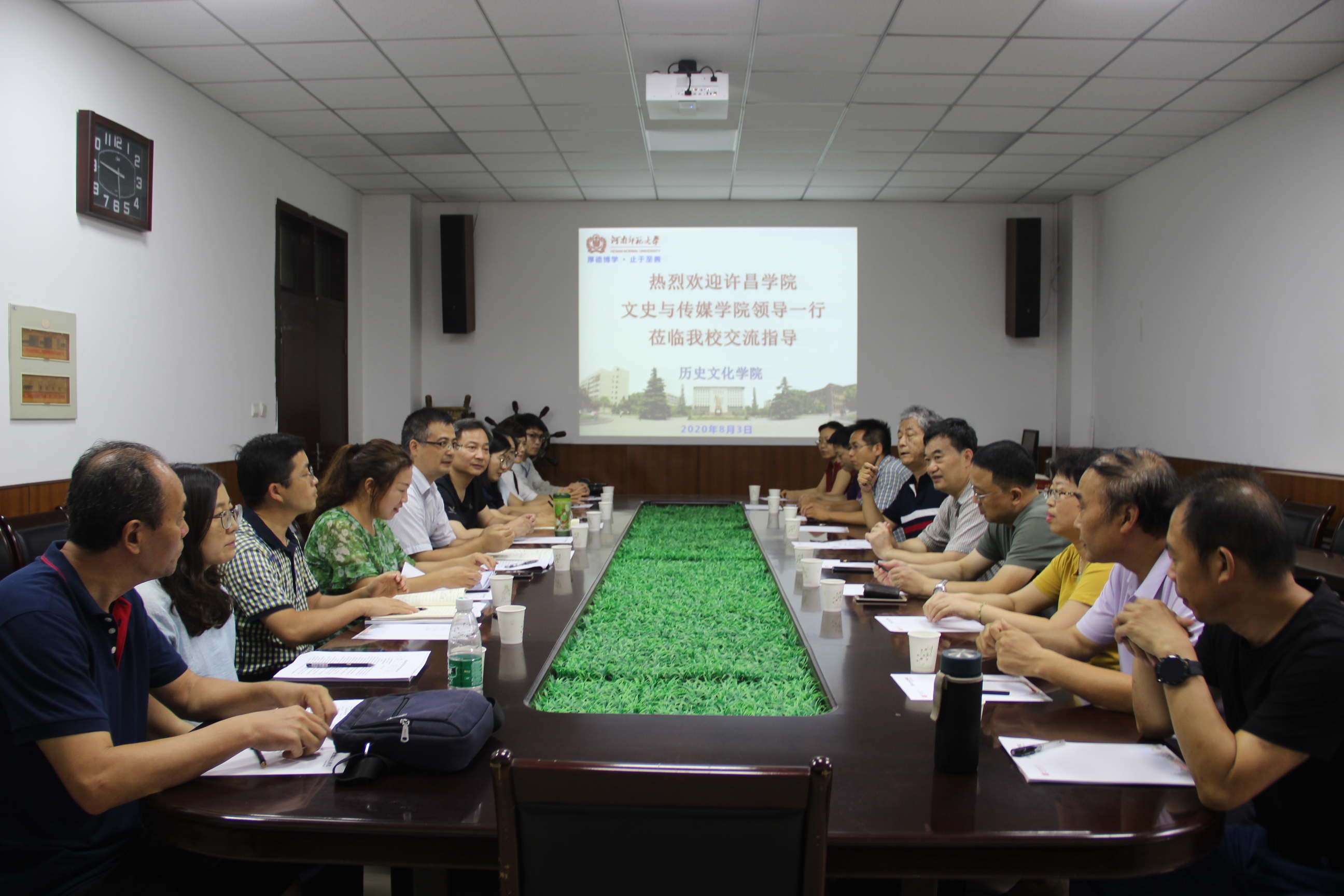 8月3日上午,许昌学院文史与传媒学院党委书记许涛、院长尤建设一行来我校考察,并与历史文化学院和文学院对接交流。历史文化学院院长苏全有、学院党委书记巨永明、副书记张壬、副院长鞠明库、李文平和历史系、世界史系负责人出席了座谈会。作为此次交流的另外一方,文学院院长李永贤、副院长段勃、赵黎波也参加了座谈,会议由历史文化学院院长苏全有教授主持。