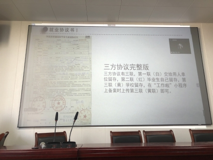 2018级辅导员袁田和张少羽围绕“先就业·再择业”的指导思想进行了系统的讲解。张少羽老师从当前的就业前景与就业环境、当前高校毕业生就业形势、就业手续办理、就业权益保障等几个方面分析,引导毕业生主动认清就业形势,了解就业政策,增强就业本领,提升就业质量。会议最后,辅导员袁田对本次就业指导会议进行总结。他表示,各班班长团支书要向同学们传达就业相关的信息,有疑问及时与辅导员沟通。