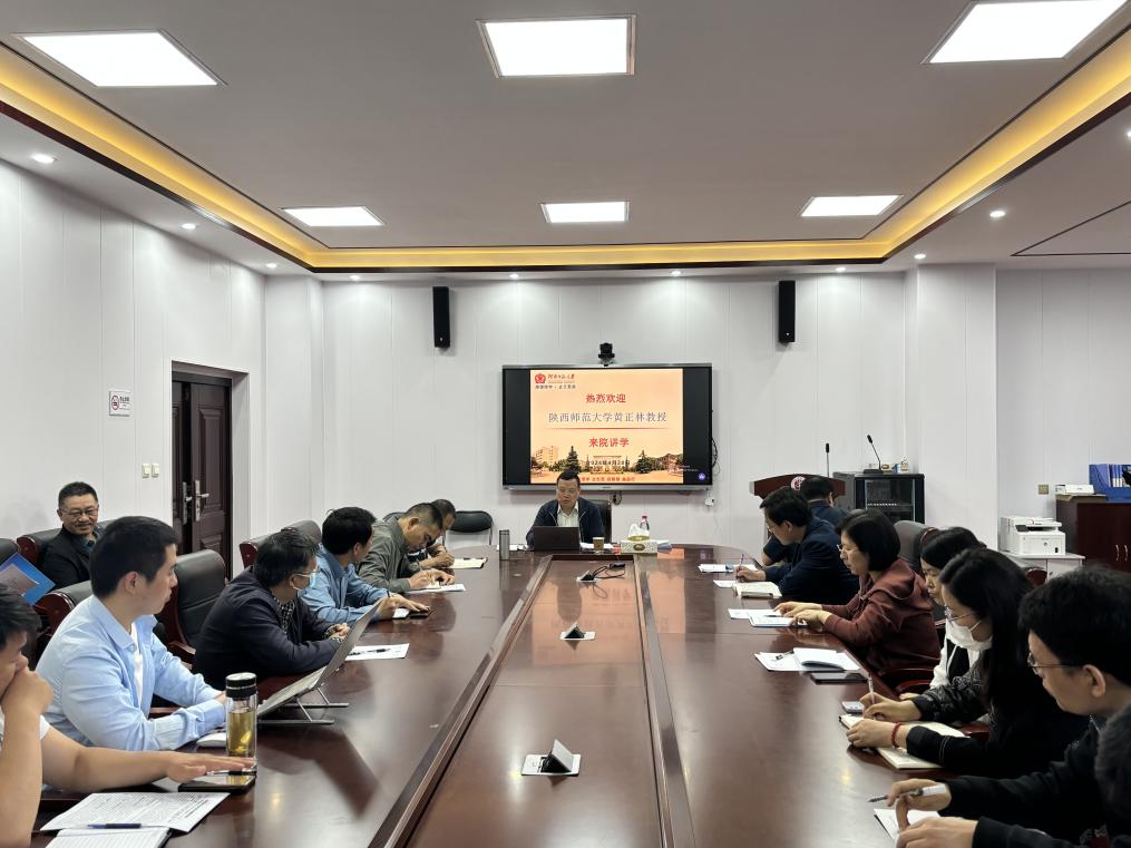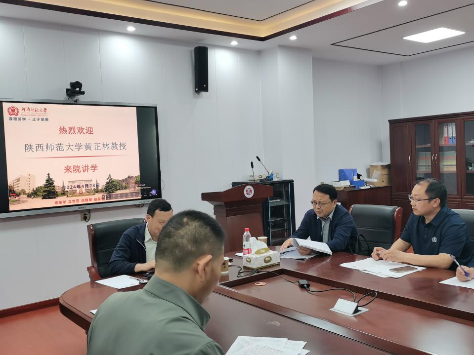 2024年4月28日,陕西师范大学教授、博士生导师黄正林应邀来院,就国家社科基金项目论证进行现场指导和交流座谈。座谈会由历史文化学院王守谦副院长主持,本年度部分国家社科基金项目申报教师参加了现场交流。河南师大社会科学处处长段勃教授到场指导论证。