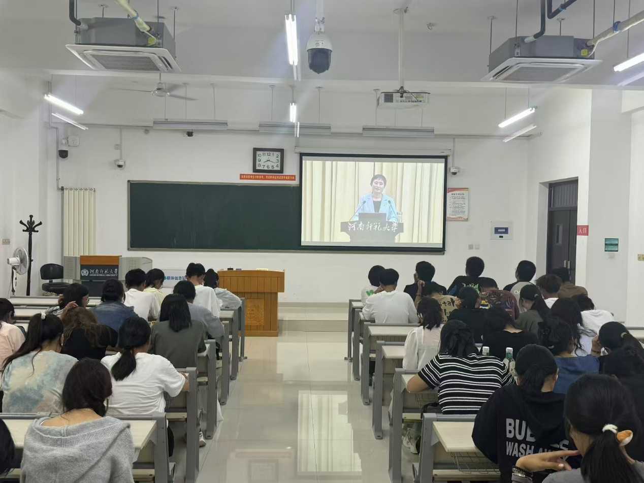 为指导2024级新生做好人生规划,将个人发展融入时代浪潮,河南师范大学于9月29日晚上7点在文昌楼开展了以“找准人生坐标,书写青春答卷”为主题的2024级新生开学第一课。本次课程由河南师范大学党委书记冯淑霞授课,历史文化学院组织2024级全体新生参与。