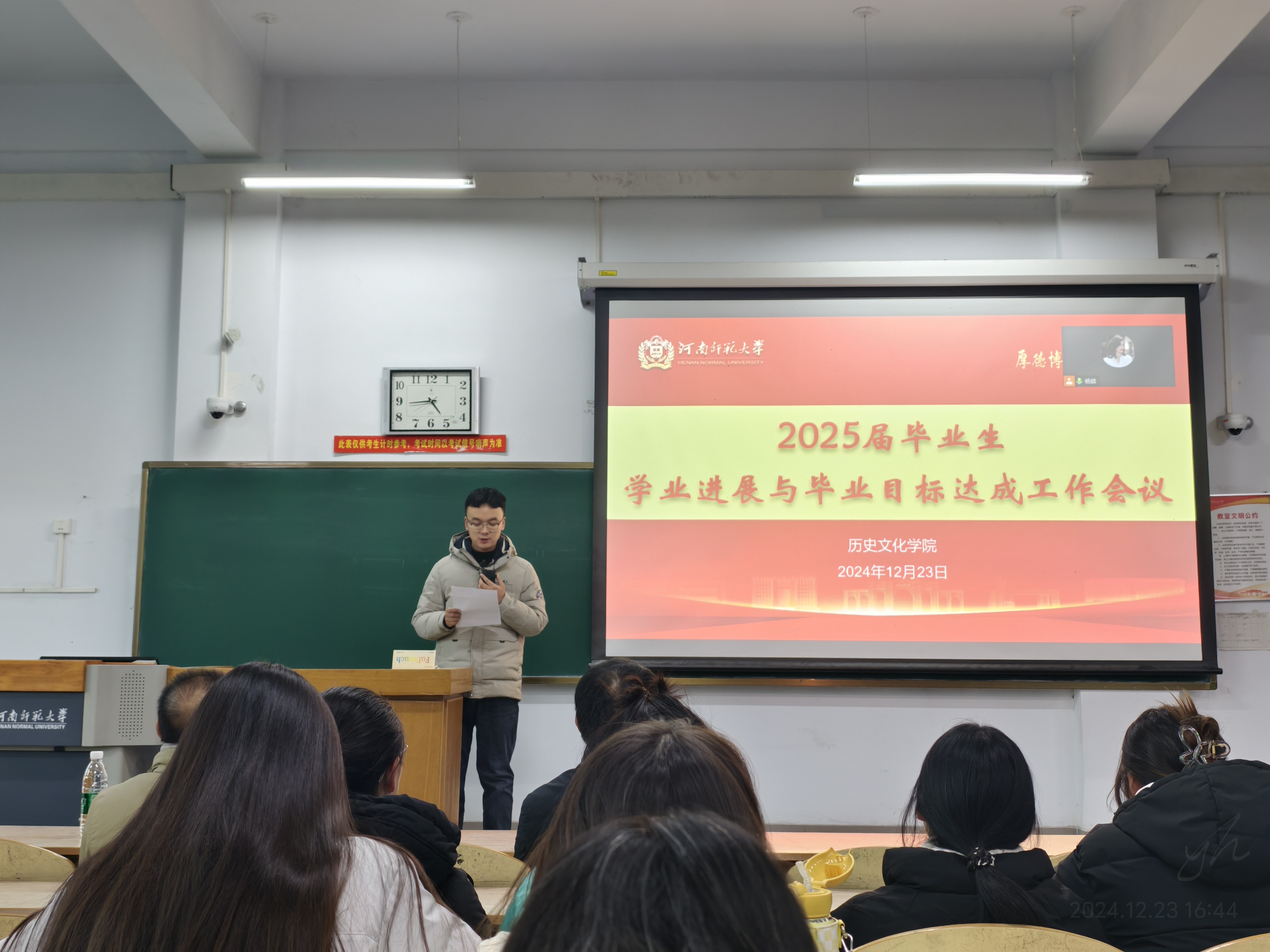 实现毕业目标达成是本科生培养的最后一环,也是检验本科专业建设水平的重要指标。2024年12月23日,历史文化学院在新五五四教学楼301教室召开了2021级本科生毕业目标达成指导工作会议。