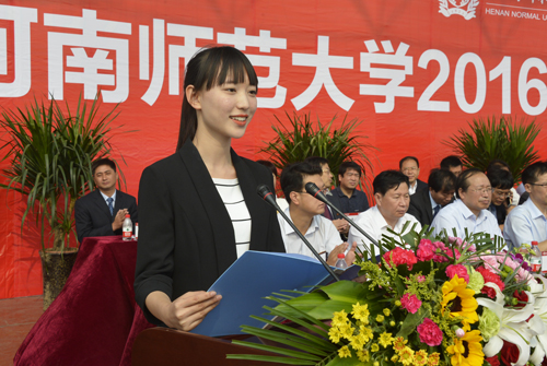 9月12日上午,河南师范大学2016级新生开学典礼在塑胶田径场隆重举行。校党政领导郑邦山、常俊标、孙先科、陈广文、马治军、张现周、岳杰勇出席典礼并在主席台就坐。典礼由副校长李雪山主持。我院2016级环境科学与工程类专业学生宗辰宣代表全体新生发言作了《满载理想、不忘初心》的发言,反响强烈。