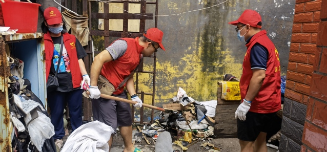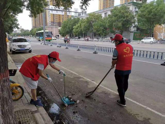 活动中,志愿者们身穿红马甲,手握笤帚、铁锹,在和平路建设路十字路口至前进路市场口路东侧进行垃圾清扫、淤泥清理、护栏清洁,协助钢厂家属院一号院居民进行垃圾清理、灾后消杀,并积极向社区群众进行灾后防疫知识宣传,帮助社区居民尽快恢复生活秩序。