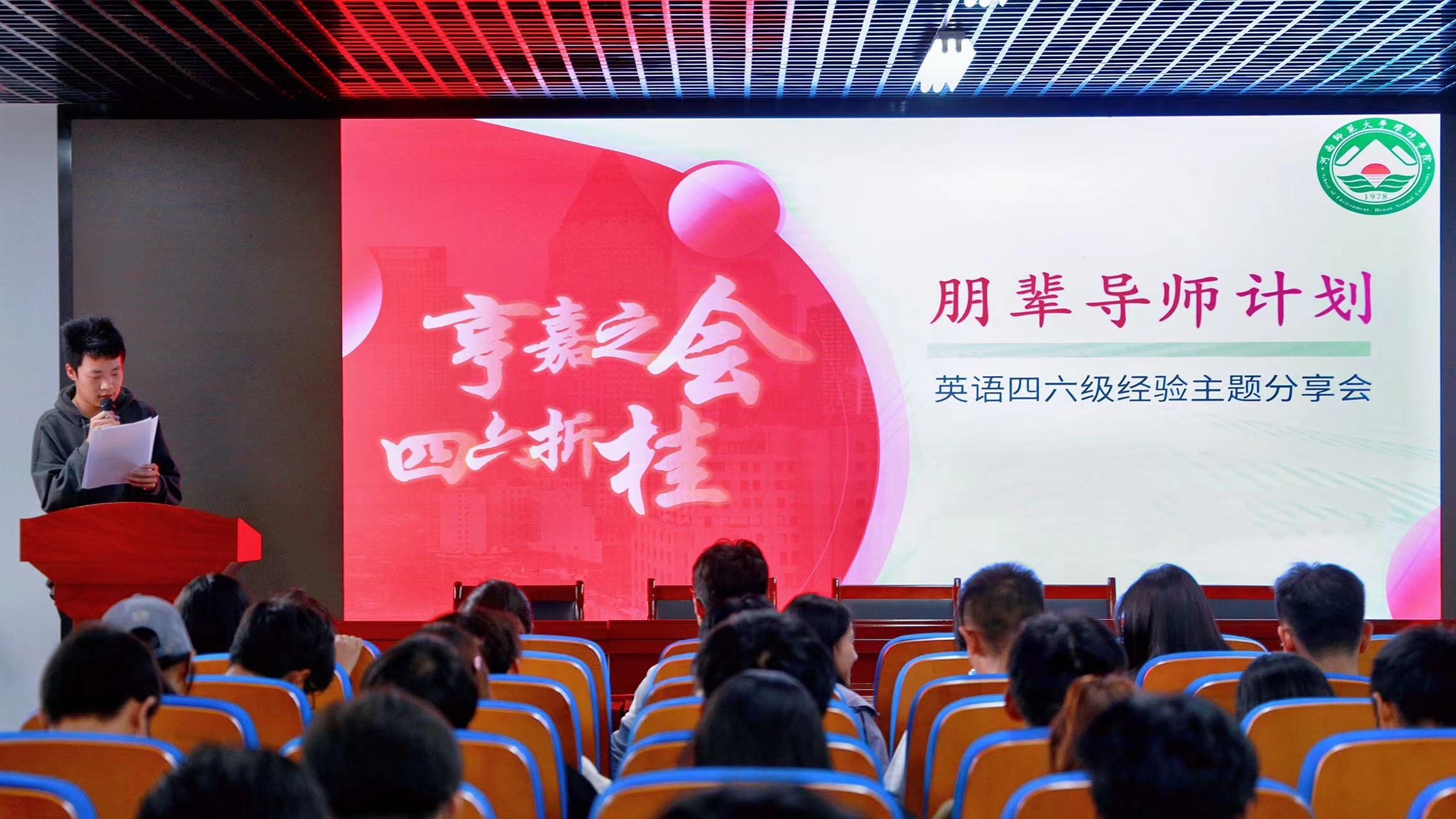 为更好地帮助同学们深刻认识四六级考试的重要性,充分了解考试内容形式,掌握英语四六级考试的应试技巧。我院于10月31日中午,在实训楼1509报告厅举办“亨嘉之会,四六折桂”朋辈导师四、六级经验分享会。学院120余名本科生参加本次分享会。