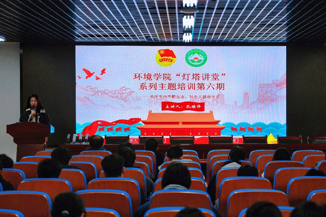 为了增强学生们保护环境的意识,关注市内空气污染,促进绿色发展理念的践行。我院于11月26日在实训楼1509报告厅开展了以“关注室内甲醛危害,对个人健康负责”为主题的科普宣讲活动,学院崔延瑞教授、团委书记岳云鹏以及120余名学生参加了本次活动,2022级环境工程专业本科生孔维泽担任主讲人。
