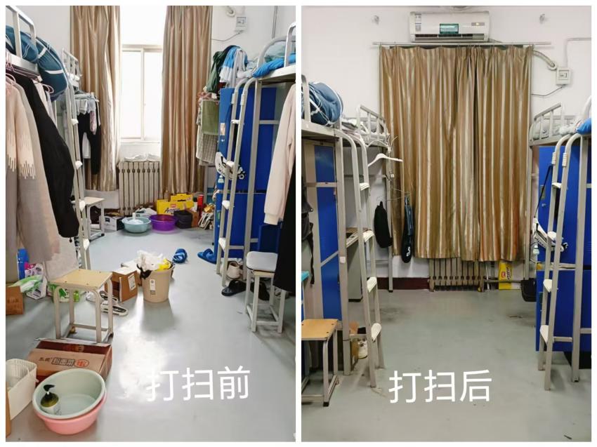 活动期间,我院和“西六”一站式社区全体宿舍纷纷踊跃投身于卫生清洁活动中,大家充分发扬团结协作精神,对宿舍展开了深度清洁与富有创意的改造。从整齐有序地整理床铺,到一尘不染地清扫地面,从合理高效地收纳物品,再到精心别致地用绿植点缀,寝室的每一个角落都凝聚着集体的认真与巧思。同学们用镜头记录下这一充满意义的过程,通过拍摄清洁前后对比照片以及创意Vlog,生动呈现了劳动过程与宿舍的精彩蜕变成果。