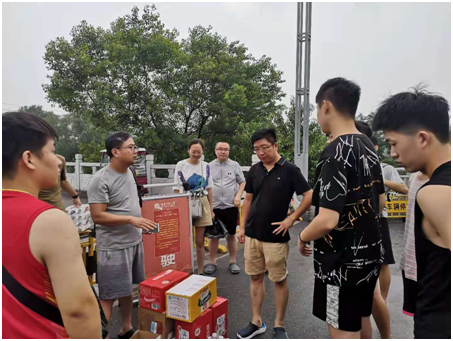 在暴雨来临之际,带着对留校学生的关心与担忧,学院党政领导班子冒雨火速回校,第一时间慰问留校学生,为他们送去食物和生活用品。同时,认真做好东校区受困学生的转移和安置工作,并及时在年级QQ群、微信群向学生传达相关防汛知识,掌握学生动向并安抚学生情绪。7月24日下午,学院党政领导班子带队再次深入学生宿舍、实验室等汛期重点区域,统计汇报灾情,排查安全隐患。
