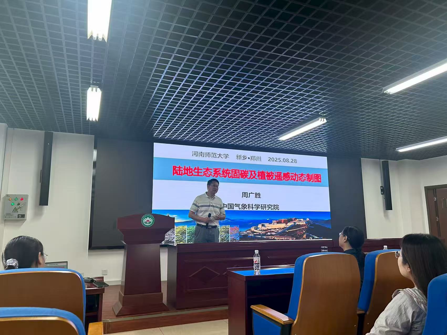 2025年8月28日下午,应环境学院邀请,中国气象科学研究院原副院长周广胜研究员,于东校区实训楼1509会议室,为我院师生进行了“陆地生态系统固碳及植被遥感动态制图”的精彩学术报告。我院相关学科学术带头人、骨干教师和研究生等80余人参加了本次学术交流活动。报告由环境学院朱桂芬副院长主持。