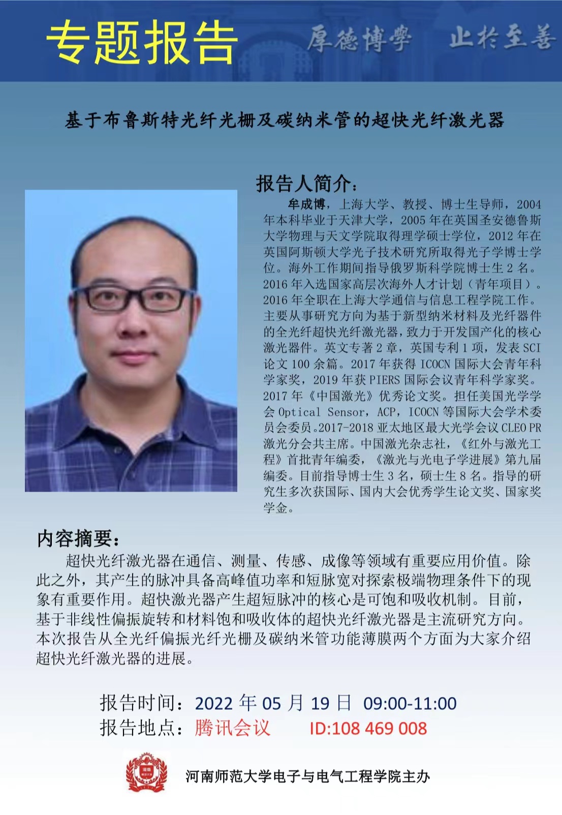 通讯地址:河南省新乡市建设东路46号河南师范大学电子与电气工程学院