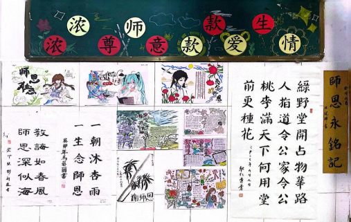 在这个特别的日子里,我校初二年级组织了一场以“浓浓尊师意 款款爱生情”为主题的书画展,以感恩老师的付出,表达对老师的敬意。