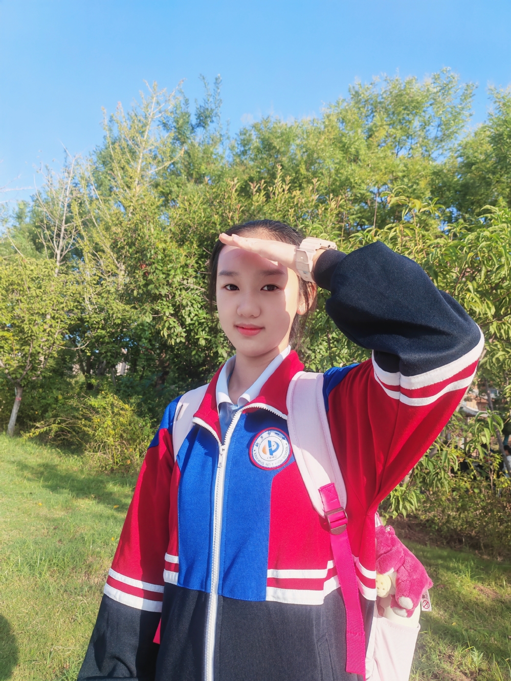 背上装满努力的书包,带着一往无前的决心,出发,上学去!20分钟內到校。