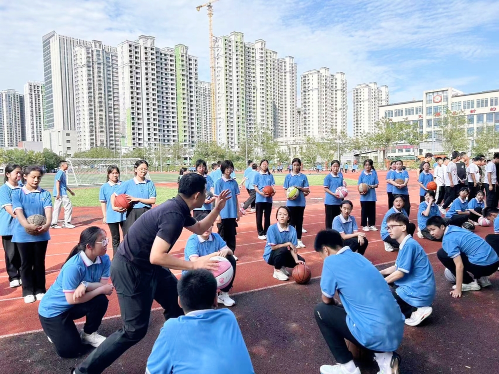 第四节体育课,彭辉老师讲解高抬腿技巧:摆臂,腿要抬至九十度,保持重心,身体不要向后倾斜。用速度与激情去奔跑,年轻的我们自信飞扬。