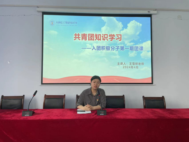 第一期团课主讲人是我校优秀历史教师王雪娇老师,她从共青团的性质、共青团的历史、共青团员的权利和义务等方面,为同学们进行了详细的讲解,引领同学们树立正确的人生观、价值观,端正入团动机,为同学们早日加入中国共产主义青年团明确了努力方向。课后,校团委赵文鹤书记宣读了《河南师范大学附属外国语学校发展团员细则》。