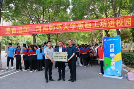 本次版画工坊展,由河南师范大学美术学院协办,采取“河南师范大学版画工坊进校园”的形式开展活动,旨在让师生体验版画的制作,弘扬传统文化,开展思政教育。活动期间,河南师范大学美术学院院长陈巍,新乡市教育局党组成员、副局长冯健,体艺卫科科长王乾聪等领导到校,就各项活动的开展进行了观摩,我校罗强校长带领班子成员陪同观摩。河南师范大学美术学院授予我校为“河南省中华优秀传统文化传承基地”、“河南木版年画传承推广基地”,并在活动现场进行了授牌。