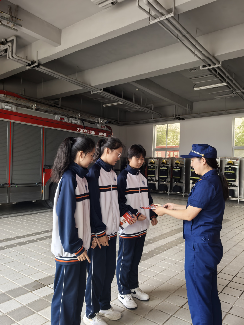 河南师范大学附属外国语学校2023级16班的同学们分成各个小组,挑选自己感兴趣的主题,以李佳怡同学为组长的小组进行了以“防火安全宣传活动”为主题的实践活动。四位同学结伴而行,怀着既兴奋又好奇的心情走进了消防大队。在消防员的带领下,同学们学习了更多的消防安全知识,通过这次近距离接触与学习,不仅让几位同学深刻体会到了消防工作的艰辛与伟大,同时也激发了他们心中对于守护家园那份责任感的认识。同学们通过听安全知识讲解、现场宣讲自救方法、发相关宣传手册等开展这项实践活动。