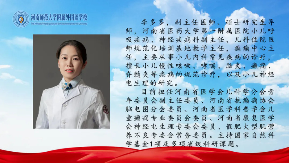 为进一步提升全体师生健康素养,筑牢校园健康安全防线,9月29日下午,我校健康副校长、河南省医药大学第一附属医院副主任医师、硕士研究生导师李多多主任到校开展了一场“秋冬季常见传染病的预防”专题健康讲座。全体师生通过校园广播认真聆听了此次讲座。讲座由赵文鹤主任主持。