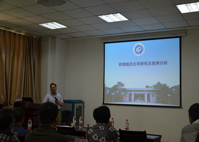 李剑教授作了题为“基于老药二次开发策略的新药研发”的学术报告。他首先指出了老药二次开发研究的核心思想,即以老药为探针分子,针对特定表型筛选模型或分子靶标开展化学生物学研究。随后又介绍了老药二次开发的内涵和优势,并以“老药萘替芬抗耐药菌新用途”和“老药福美双抗肿瘤新用途”两个案例,使我们对老药二次开发研究有了更加直观的认识。任国宾教授作了题为“药物固态化学研究及案例分析”的学术报告,详尽地介绍了药物晶型筛选及评价,包括单晶X-射线衍射、粉末X-射线衍射、热分析、红外光谱、拉曼光谱及固态核磁等固态表征技术,同时还列举了利托那韦、恩替卡韦等药物多晶型研究经典案例,最后又介绍了药物晶型平台。与会师生就报告的内容提出了一系列问题,两位专家一一进行了解答,现场气氛活跃。
