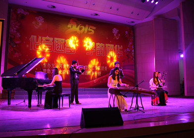 化音逐梦,学韵研华。1月27日晚,我院在音乐厅隆重举行2015新年联欢晚会。院党委书记孔国庆、院长张贵生、党委副书记王毅、副院长赵扬、赵春霞、郭玉明等领导出席,与我院600余名师生共同观看本次晚会。