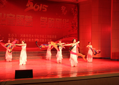 在全体观众的倒计时声中,青春动感的开场舞拉开了晚会的序幕。随后,院长张贵生致新年贺词,张院长回顾2014,展望2015,并向全体师生致以诚挚的新年问候和祝福。本场晚会由学院教职工、研究生、本科生齐展风采,一同呈现。晚会中,热情洋溢的歌曲演唱《青藏高原》、《时间煮雨》等,不断推动现场气氛;轻松活泼的相声表演《同桌的你》,贴合校园生活,引导大家树立正确的爱情观;六种乐器联奏《梁祝》、《金蛇狂舞》,中西方乐器交融碰撞,让大家耳目一新;扇子舞表演《踏古》,彩扇飘飘,美轮美奂。值得一提的是,孔国庆书记和赵扬院长带来的诗歌朗诵《放飞中国梦》,激情昂扬,鼓励大家努力奋斗,实现梦想。晚会表演形式多样、各具心意,并别出心裁引入化学和社会主义核心价值观等元素,把握时代潮流,展现学院风采。最后,晚会在院团委学生会全体成员的歌曲联唱中落下帷幕。