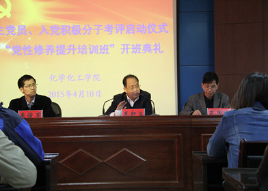 4月10日下午,我院在化学北楼五楼会议室举行党员、入党积极分子考评启动仪式暨“党性修养提升培训班”开班典礼。校党委副书记王新生,党校办公室主任、校党委组织部副部长来俊军和我院党委书记孔国庆、院党委委员、学生党支部书记及委员、学生党员、入党积极分子参加了会议。会议由化学化工学院党委副书记王毅主持。