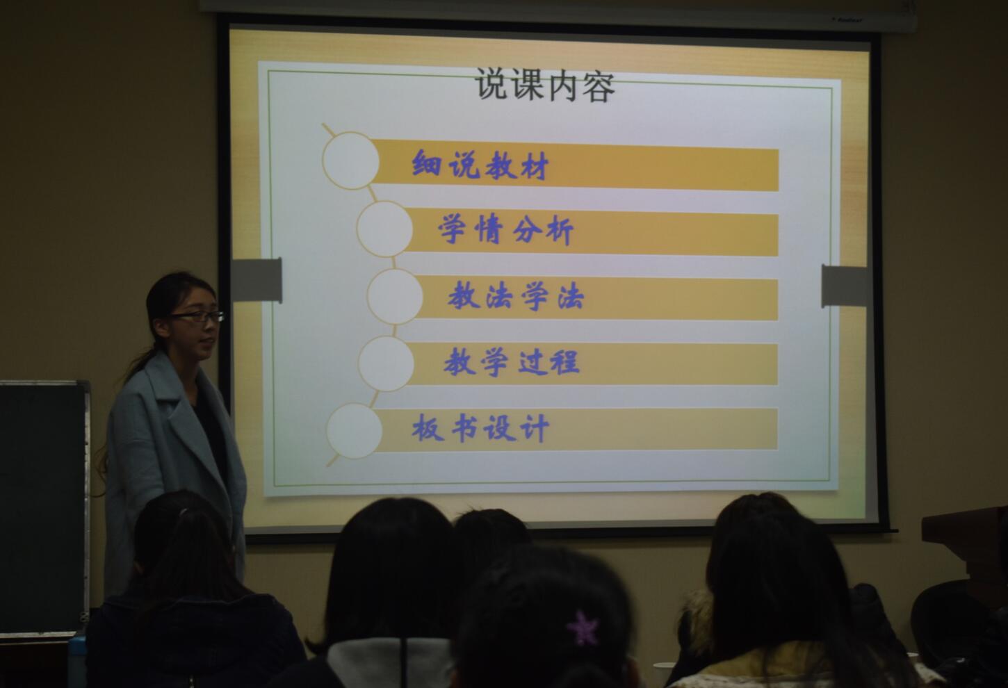 活动前期,工作人员利用学院微博,微信和空间三大网络平台进行积极宣传,为活动的具体流程和相关事宜做好了充分准备。比赛当晚,会场主持人首先宣读了比赛规则和评分标准,各位选手按照编号依次上场。选手们充分利用PPT和教学用具,多角度切入所讲知识点,给听众不一样的感受。其中,2014级肖铭台风成熟大气,言简意赅,利用化学反应精确地把握了课堂重点,吸引了观众的眼球。2016级的王黎瑛则以一口流利的英语,以热门话题作引,为观众呈现了一场别开生面的英语课堂,方式新颖,引人入胜。此外,有的选手用传统书写板书的方式,讲解化学方程式,展示了我院人的风采。最后,评委们从着装、台风、PPT制作、互动等多方面对参赛选手进行了详细点评。据悉,本次大赛将评选出讲课说课各一等奖一名、二等奖两名、三等奖三名,颁发证书,并推选共四名同学参加校级比赛。