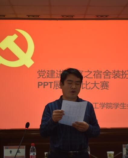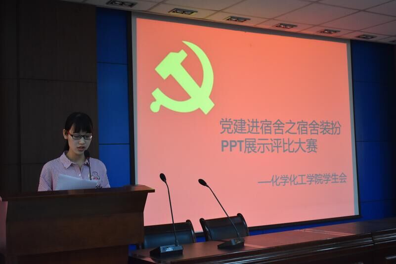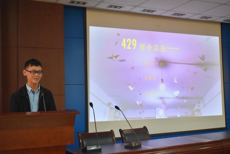 4月25日中午,我院于化学北楼五楼会议室举办了学生党建进宿舍系列活动之宿舍装扮PPT展示评比大赛。该活动由院学生会生活部和自律部联合主办。特邀院党委副书记李朝阳,团委指导老师曹锟,2014级与2016级兼职辅导员担任评委。2016级百余名同学参加了此次活动。