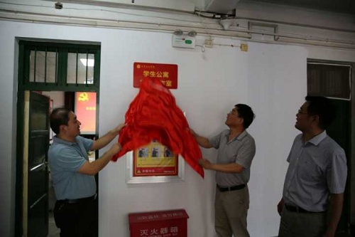 仪式结束后,岳杰勇一行前往西校区中二楼为学生公寓党建工作室揭牌,并了解了工作室的建设情况,随后参观了学生公寓党建服务点及宿舍装扮情况。