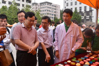 6月3日,我院于图书馆前举办“魅力化学”科技文化节之创新创业作品展示。校领导高度重视,亲自前往展位参观。