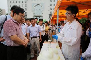 “同学们,我们的实验演示马上开始。”6月3日上午,河南师范大学首届“魅力化学”科技文化推广日中的趣味实验展示区吸引了许多过往师生驻足观看。