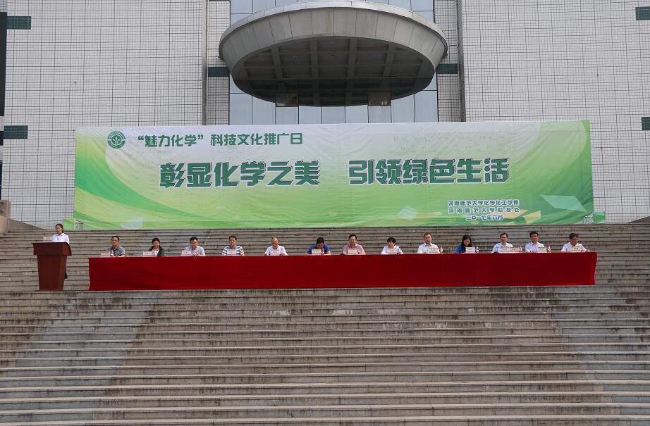 彰显化学之美,引领绿色生活。6月3日至4日,由我院、科技处联合开展的“魅力化学”科技文化推广日活动顺利举行。6月3日上午,活动开幕式在图书馆前广场举行,副校长李雪山出席开幕式并讲话。科技处、学生处、学科建设办公室、就业创业指导服务中心、校团委、科学技术协会等职能部门负责人和化学化工学院领导班子成员,师生代表共800余人参加开幕式。开幕式由我院党委书记来俊军主持。