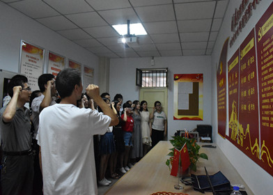 恳谈会结束后,全体党员佩戴党员徽章,面向鲜红党旗,进行了庄严宣誓,重温了入党誓词。