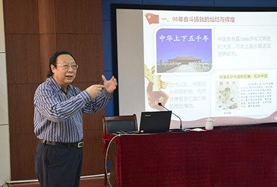 赵国祥结合主题,带领大家详细回顾了中国共产党98年来革命、建设和改革的奋斗历程,对比了不同历史时期我国在经济、国防、民生和国际地位等方面取得的发展成就,生动地阐释了中国共产党之所以能够带领全国人民实现从站起来、富起来到强起来的关键因素,就是始终不忘初心、牢记使命、砥砺前行。赵国祥结合毛泽东、邓小平和习近平三位国家领导人为信仰、为国家和为人民的奋斗历程,和习近平总书记提出的“我将无我,不负人民”这一中国共产党人追求的最高人生境界,诠释了中国共产党全心全意为人民服务的根本宗旨,让广大师生深刻体会到一代代共产党人为中国人民谋幸福,为中华民族谋复兴的初心和使命。