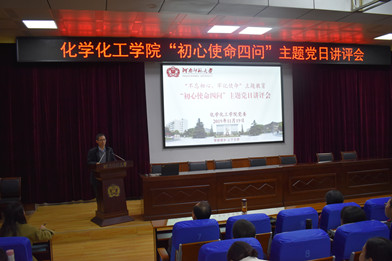 为贯彻习近平总书记视察调研河南时的重要讲话精神,推动“不忘初心、牢记使命”主题教育走深走实, 11月19日下午,化学化工学院在新554教学楼102党校教室开展“初心使命四问”主题党日讲评会。学院党政领导、全体党员、2019年下半年发展对象参加了本次会议。