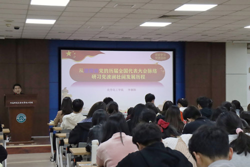 讲座开始前,院党委组织员王曼曼传达了《中共河南师范大学党史学习教育方案》和学院相关学习要求;院团委副书记曹锟宣读了学院团委关于开展“学党史、强信念、跟党走”学习教育系列活动方案。最后,院党委副书记李朝阳作总结讲话并为大家上党课。李朝阳以“从建国前党的历届全国代表大会脉络研习党波澜壮阔发展历程”为题,从中共一大到中共七大,带领大家重温中国共产党创立及早期革命活动、土地革命、抗日战争、全国解放战争四个历史时期艰苦卓绝的奋斗历程,为大家上了一节生动的党史学习教育课,传达了习近平总书记对广大党员特别是青年党员“在学思践悟中坚定理想信念,在奋发有为中践行初心使命”的殷切期望。