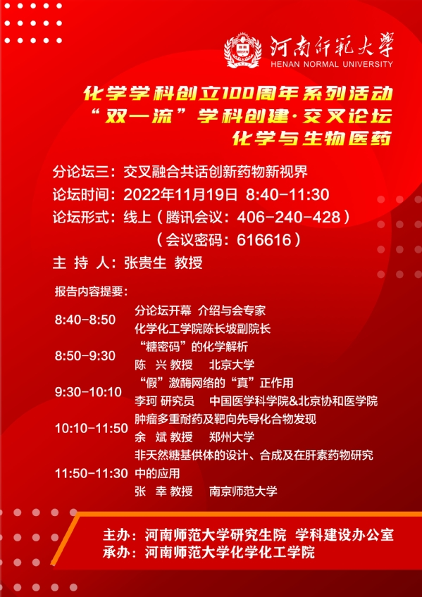 河南师范大学化学学科“双一流”创建交叉融合创新论坛暨化学学科创立100周年系列学术交流活动(三)