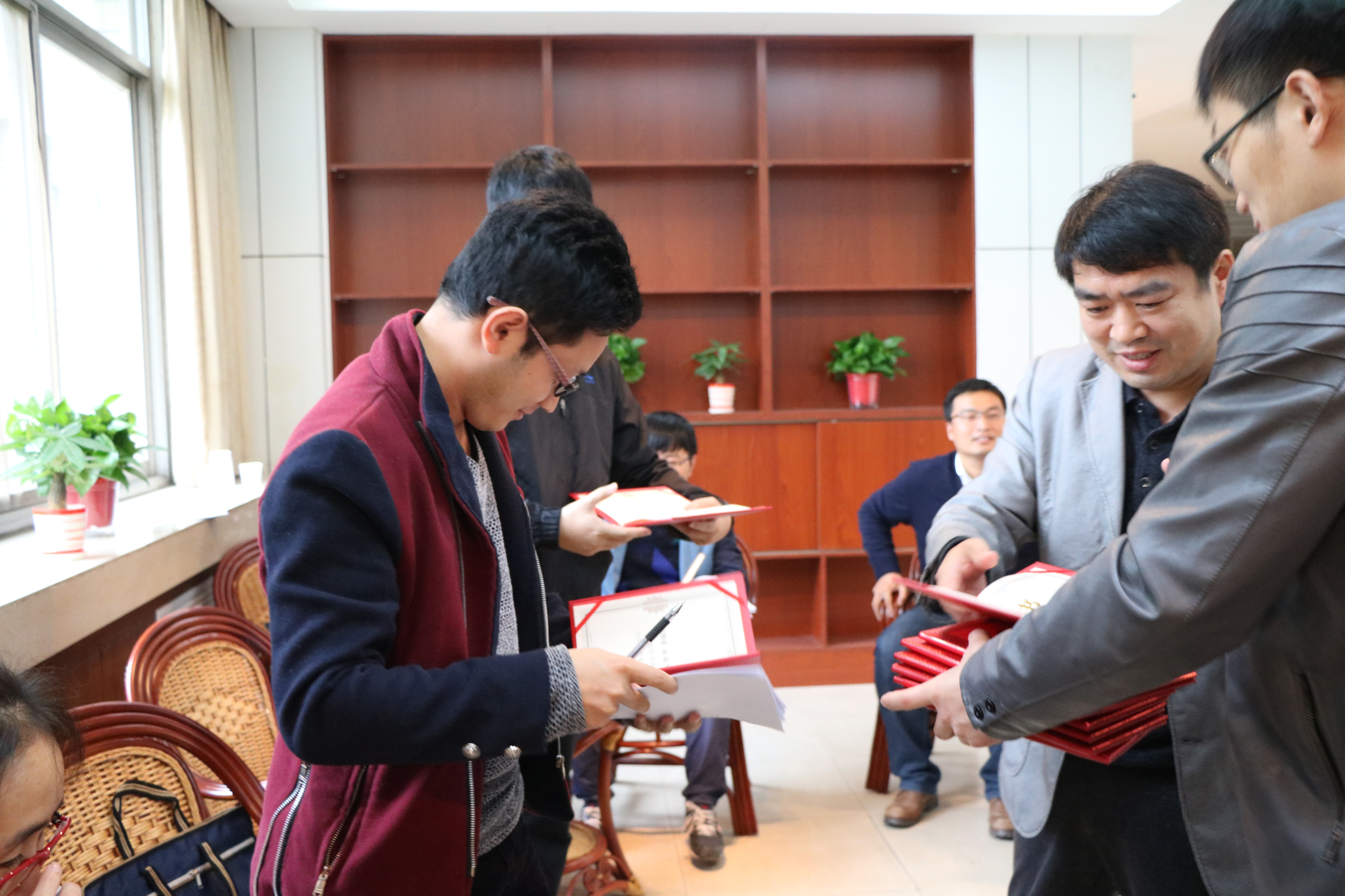 10月25日下午,我院2017级班主任聘任仪式在化学北楼二楼沁心茶吧正式举行。化学化工学院党委副书记李朝阳,新生辅导员卢鑫与各位班主任亲切座谈,并颁发聘书。 首先,卢鑫简要介绍了年级概况,并代表新生辅导员欢迎各位班主任老师加入2017级这个温馨有爱的大家庭。随后,2016级制药工程专业班主任辛鹏洋作为高年级班主任代表讲话。他从认清新生特点,配合学院及辅导员工作,做好学生学业指导及把握学生思想动态等四个方面进行了经验分享,受到了在座老师们的一致好评。李朝阳为班主任颁发聘书,同时就目前实行的班主任考核办法和“俊甫计划实验班”的动员工作做了重点强调,提出“德才兼备,全面发展”的人才选拔要求。贾献彬代表新聘班主任发言并表态,“我们一定要结合我们的所学,将学生们培养成德才兼备的优异化学人。”最后,与会老师合影留念,本次活动圆满落下帷幕。 班主任工作制度是河南师范大学实践育人过程中的又一重要探索,更是落实立德树人根本任务的重要举措。我院作为班主任制度的开拓者和先行者,一直高度重视班主任工作,着力推进大学生思想政治教育工作积极、健康、稳步向前发展。 (化学化工学院 李德铭 付孝静) |